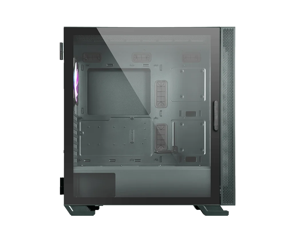 У корпуса имеется окошко из закаленного стекла толщиной 3 мм. Оно крепится на шарнирах и легко открывается, предоставляя доступ к компонентам компьютера.